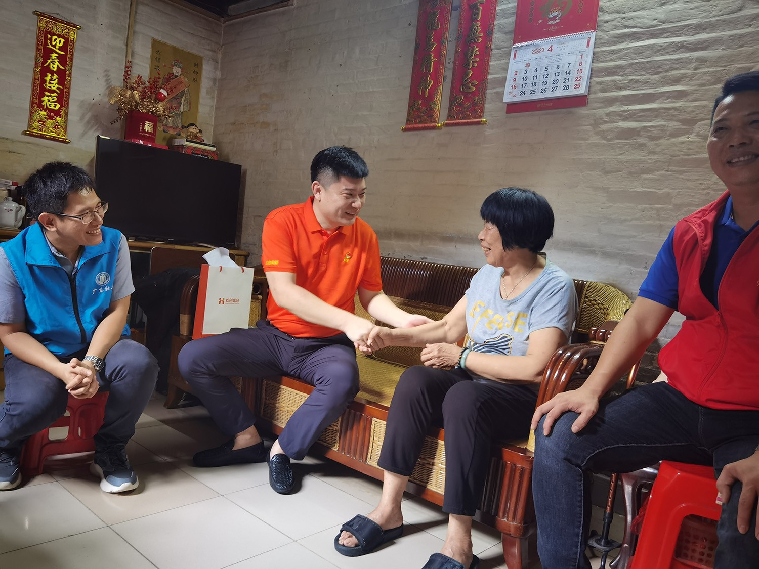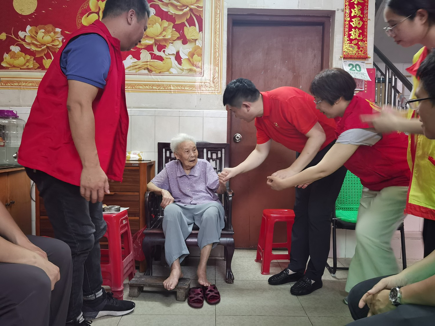 6月20日下午,活動(dòng)統(tǒng)籌人周雁玲、黨員蘇澤彬、黃旭、周超與沙涌村黨支部成員、大龍街社工站成員,一同深入大龍街沙涌村入戶探訪老黨員,向他們致以端午節(jié)日的問候并送上生活用品一批。