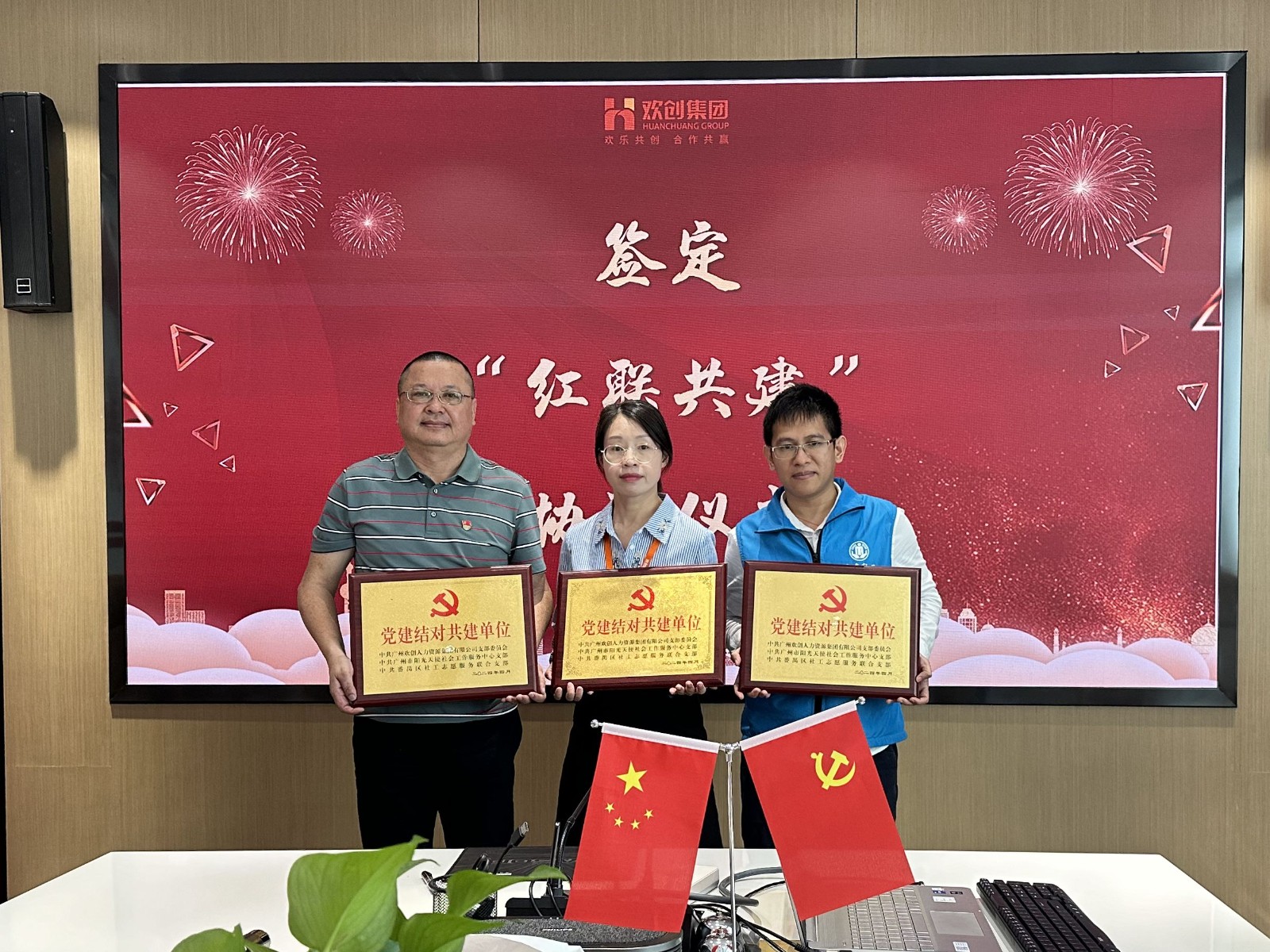 2024年3月28日上午,中共廣州歡創(chuàng)人力資源集團有限公司支部委員會、中共廣州市陽光天使社會工作服務(wù)中心支部委員會、中共番禺區(qū)社工志愿服務(wù)聯(lián)合支部委員會,在歡創(chuàng)集團黨員活動室開展紅聯(lián)共建活動。
