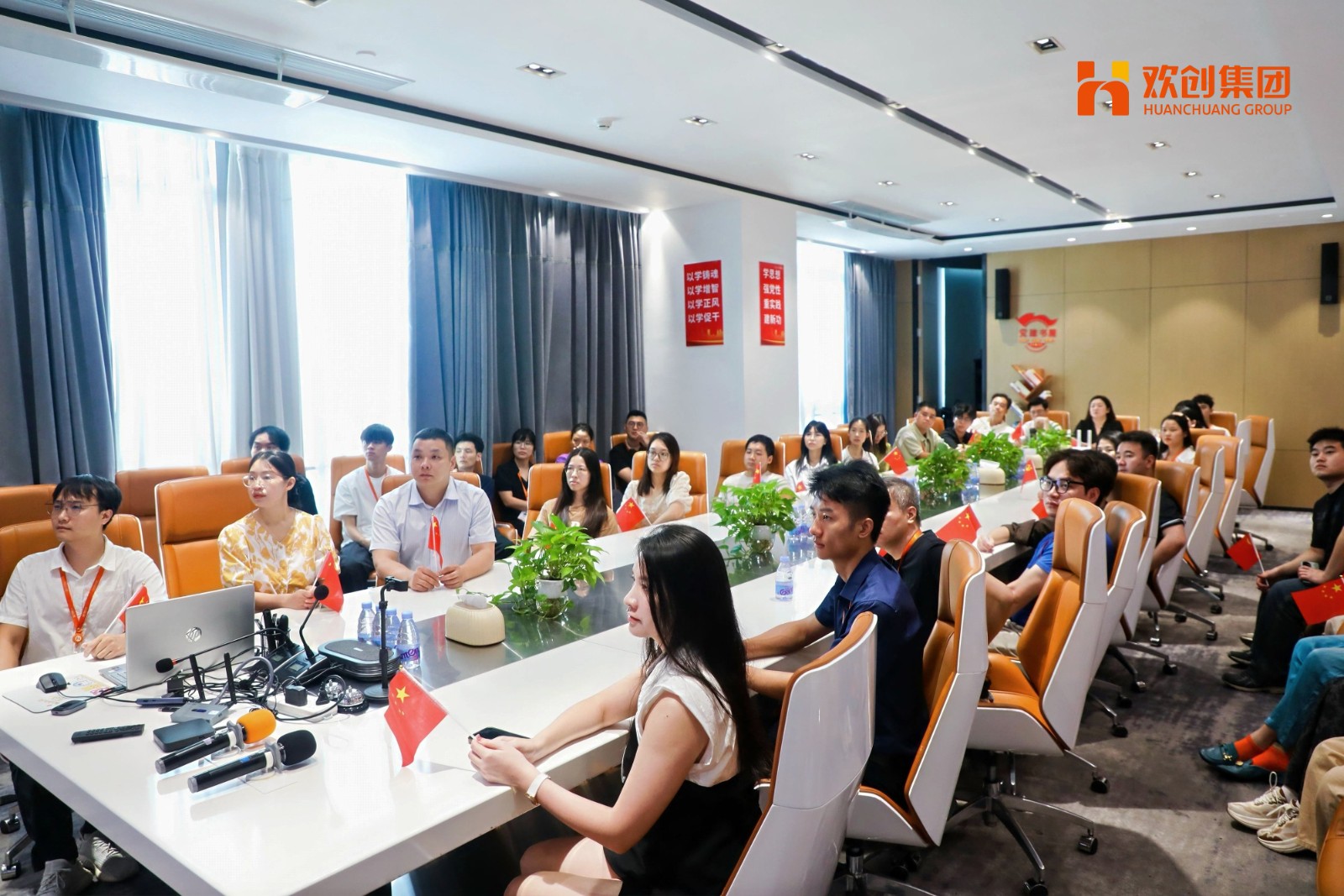 歡創(chuàng)集團總部組織全體員工共同收看直播,一起見證這一莊嚴時刻!