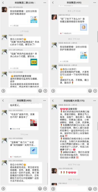 守望相助,共克時(shí)艱。一直以來,歡創(chuàng)集團(tuán) 時(shí)刻關(guān)愛和重視員工的身心健康,著力打造安全、健康、溫馨的工作環(huán)境,讓員工切實(shí)感受到了“家”的溫暖。在接下來的工作中,歡創(chuàng)集團(tuán)將繼續(xù)發(fā)揮組織優(yōu)勢,采取切實(shí)措施,督促各分子公司做好疫情保障工作,切實(shí)保障員工的健康和利益,構(gòu)筑堅(jiān)固的疫情防控堡壘。讓我們共同努力、堅(jiān)決打贏這場“硬仗”!