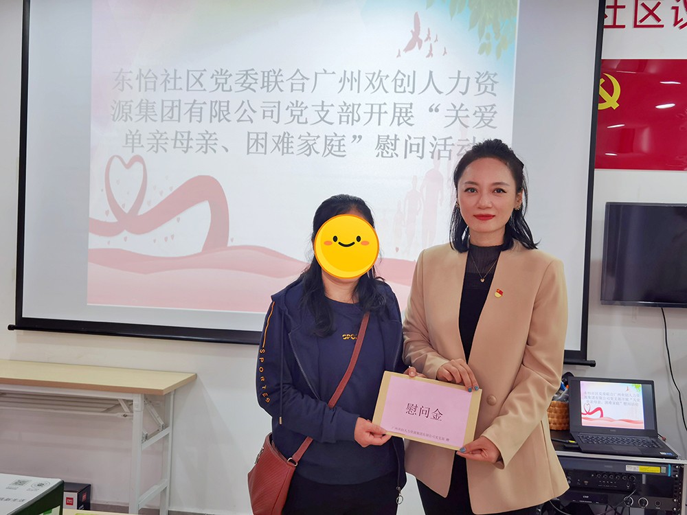 在三八國(guó)際婦女節(jié)來(lái)臨之際,歡創(chuàng)集團(tuán)黨支部聯(lián)合東怡社區(qū)開(kāi)展“關(guān)愛(ài)單親母親困難家庭”慰問(wèn)活動(dòng),為困難家庭送上溫暖和節(jié)日祝福,把“娘家人”的關(guān)愛(ài)送到困難家庭的心坎上。