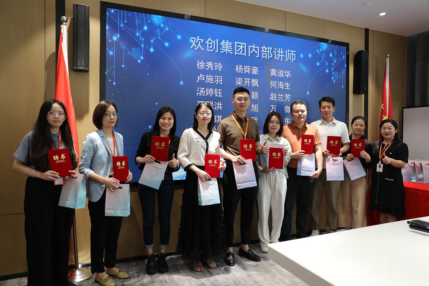 每一張聘書(shū),都彰顯著責(zé)任與擔(dān)當(dāng)、專(zhuān)業(yè)與成長(zhǎng)、自豪與感動(dòng)。它記錄著講師們對(duì)企業(yè)組織發(fā)展、業(yè)務(wù)助力、人才孵化、培訓(xùn)管理的歷程,形成歡樂(lè)學(xué)習(xí)、良性競(jìng)爭(zhēng)的公司氛圍,為歡創(chuàng)集團(tuán)實(shí)現(xiàn)人才發(fā)展做出巨大貢獻(xiàn)。此時(shí)此刻,每一位講師都是最特別的、最閃光的,每一個(gè)人的印記都在這里定格。
