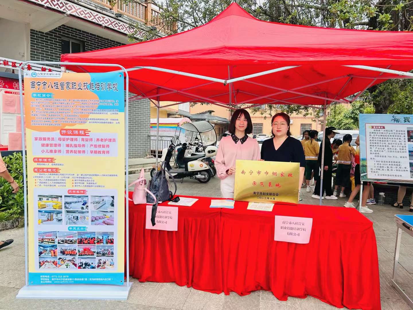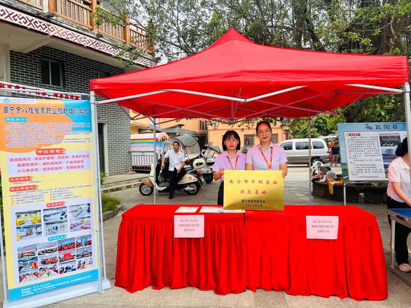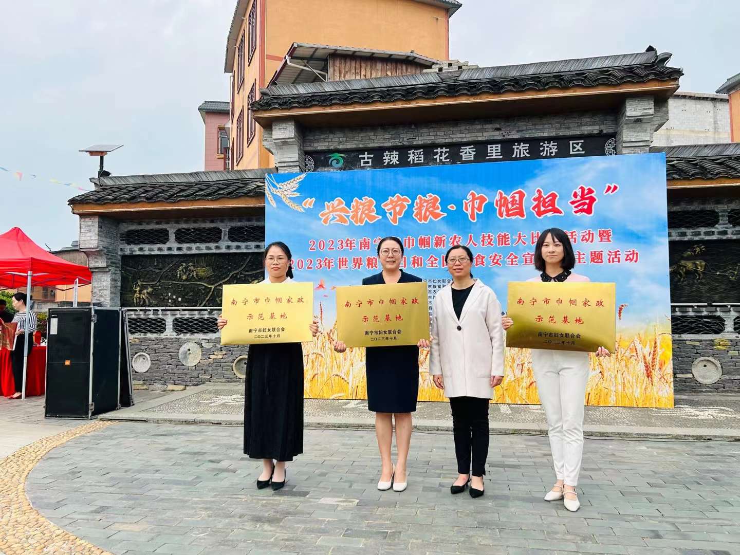 經(jīng)過嚴(yán)格評審和現(xiàn)場考察,南寧市婦聯(lián)確定我公司下屬培訓(xùn)學(xué)?!蠈幨邪斯鸸芗衣殬I(yè)技能培訓(xùn)學(xué)校為“南寧市巾幗家政示范基地”。10月24日,南寧市婦聯(lián)在賓陽縣古辣鎮(zhèn)開展的“興糧節(jié)糧,巾幗擔(dān)當(dāng)”2023年南寧市巾幗新農(nóng)人技能大比拼活動暨2023年世界糧食日和全國糧食安全宣傳周主題活動上,南寧市婦聯(lián)領(lǐng)導(dǎo)為我司培訓(xùn)學(xué)校頒發(fā)了“南寧市巾幗家政示范基地”牌匾。