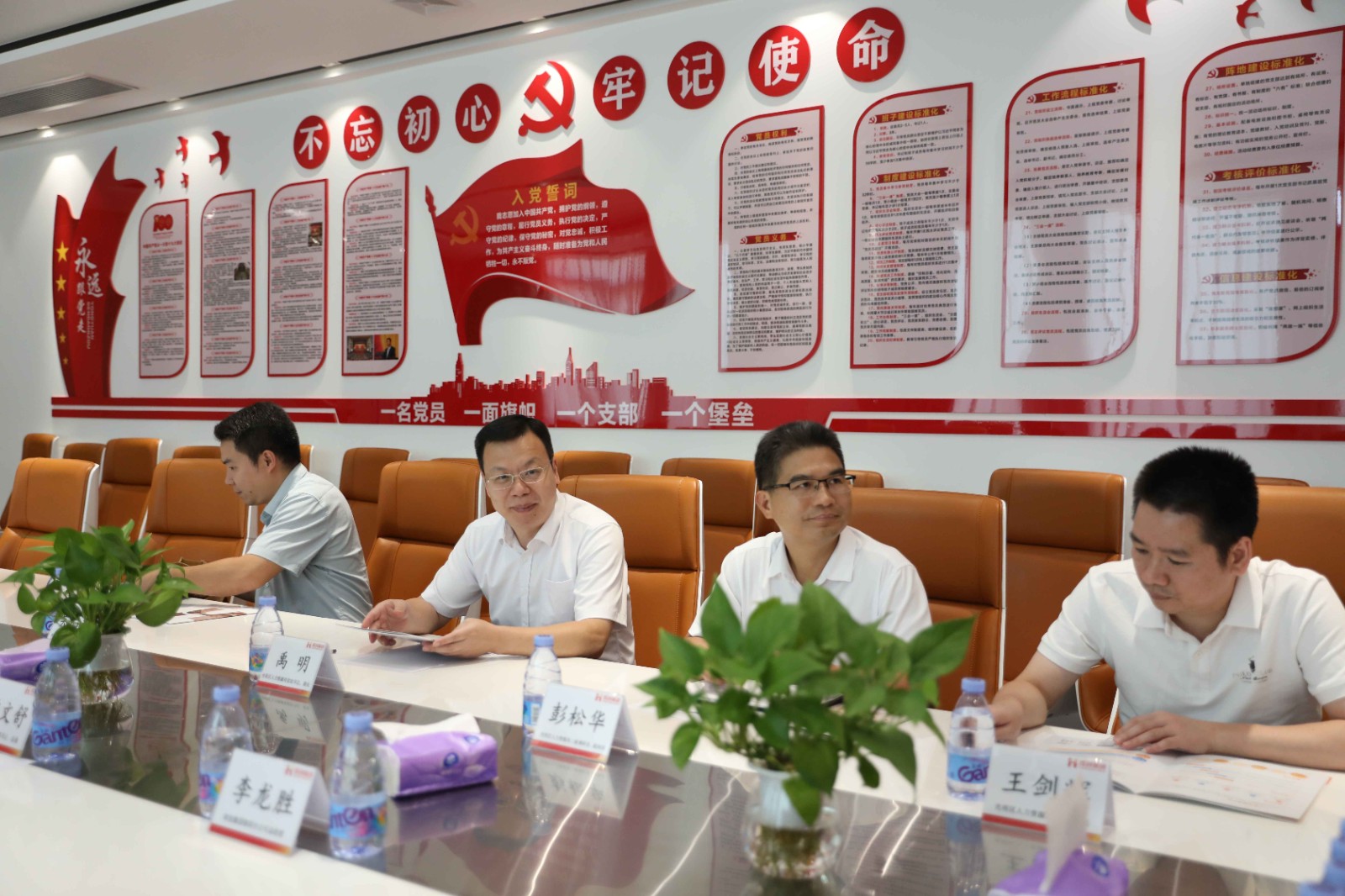 陳文舒、李龍勝等帶領(lǐng)來賓參觀了公司內(nèi)部,介紹企業(yè)文化墻和歡創(chuàng)的發(fā)展歷程。