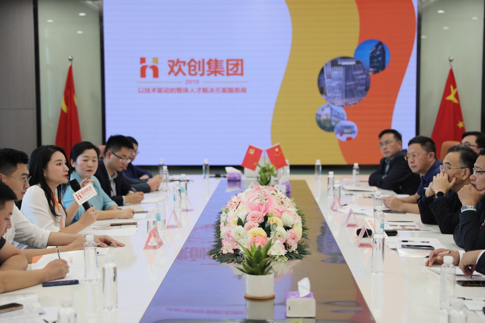 會議伊始,歡創(chuàng)集團黨支部書記、集團總裁陳文舒長為來賓介紹歡創(chuàng)集團的發(fā)展歷程、核心產(chǎn)品和商業(yè)模式。陳文舒總表示,歡創(chuàng)集團利用先進的技術賦予人力資源行業(yè)新的活力,探索出的新模式要廣泛傳播,希望與眾多企業(yè)積極分享成果,合作共贏,從而不斷開拓創(chuàng)新,迎接挑戰(zhàn),共同推進人力資源產(chǎn)業(yè)快速發(fā)展,實現(xiàn)新的發(fā)展價值。