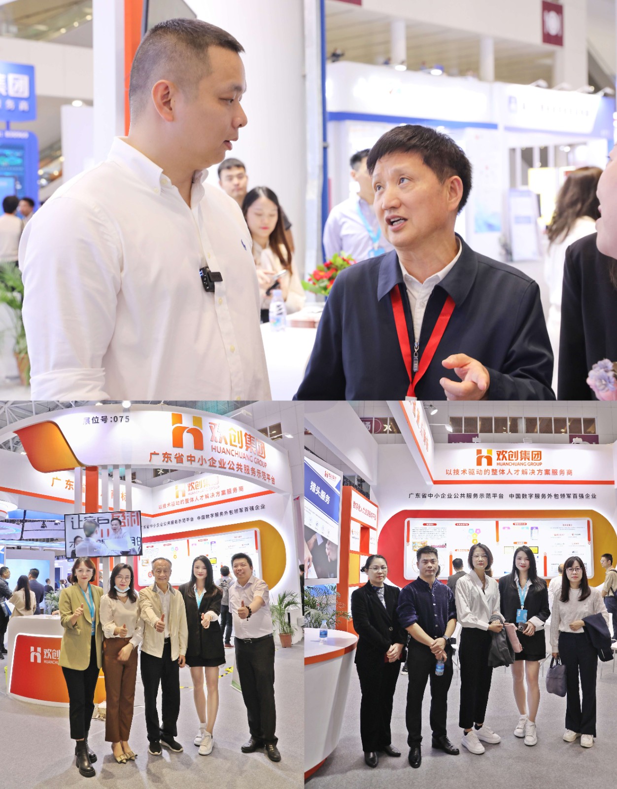 開幕當(dāng)天,廣東省、廣州、青島、煙臺、普寧等地人力資源和社會保障局和廣東省政府相關(guān)領(lǐng)導(dǎo)先后蒞臨歡創(chuàng)集團展位指導(dǎo),他們詳細了解了歡創(chuàng)專業(yè)化方面的服務(wù)能力和技術(shù)優(yōu)勢,對歡創(chuàng)集團的快速發(fā)展和創(chuàng)新實踐給予了充分肯定。